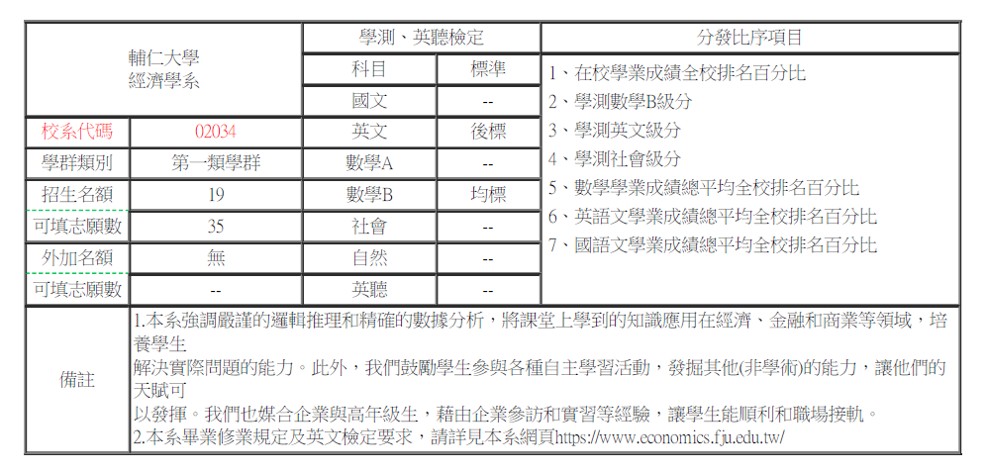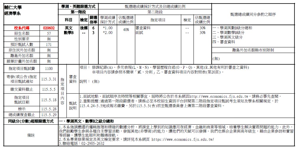 【以下招生資訊皆以當年度簡章為主】