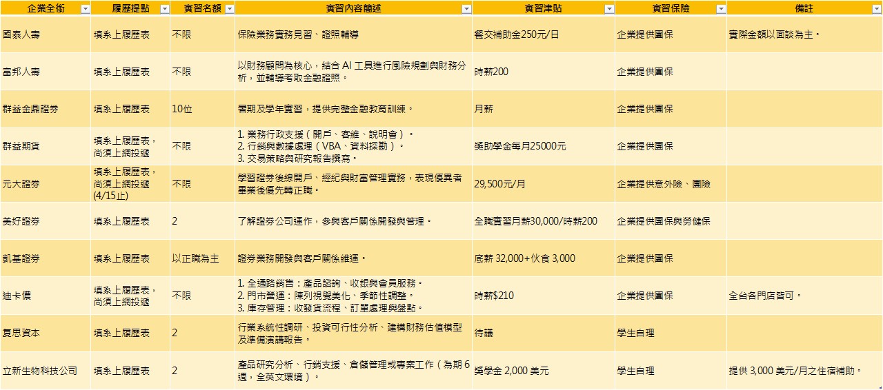 - 【特別警示】: 元大證券 之申請期限較早(至 4/15 止),請有意申請之同學留意時效。